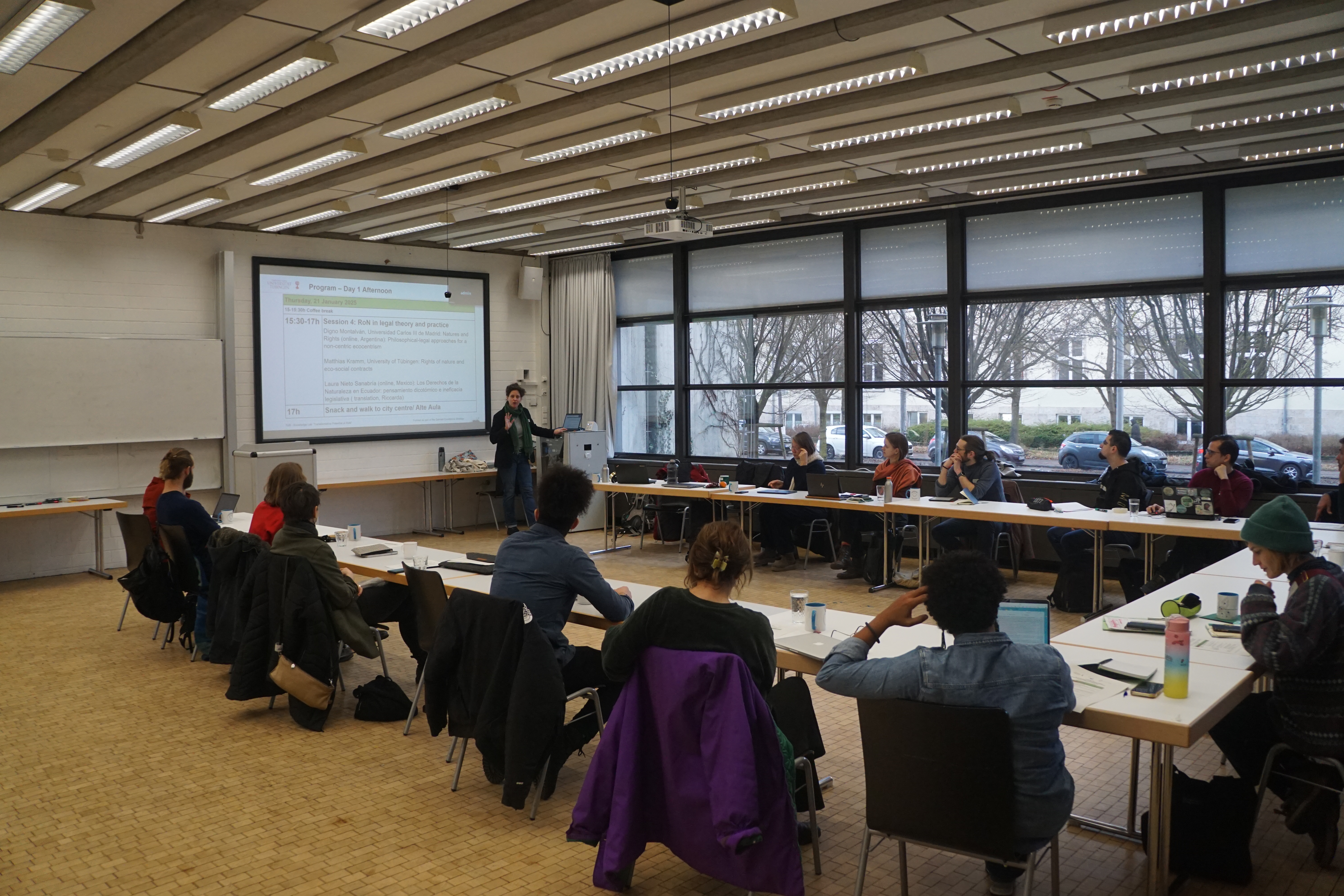 23/01/2025 - EventOn 23 and 24 January 2025, artists, activists and researchers came together at the University of Tübingen for the Knowledge Lab "The Transformative Potential of Rights of Nature? Perspectives and Synergies in Arts, Activism, and Academia.” This experimental thinking event was hosted by Riccarda Flemmer (University of Tübingen), Annette Mehlhorn (MPI Halle) and Cecilia Oliveira (RIFS Potsdam). Rights of Nature (RoN), a legal innovation recognizing that nature has its own rights and legal standing, has sparked enthusiasm as well as skepticism regarding paths for transformation. While RoN are discussed for promising change in legal and political arenas, several ideas about what needs to change and how this change should occur are emerging in parallel in Latin America and Europe. Taking some interdisciplinary and arts-based projects as starting points, the workshop brought together people and collectives rooted in different workspaces to reflect based on concrete past, present, and future projects engaging RoN. The objective of the LAB was to reflect on ways to think and feel about human-nature relations and how to include these ways into one's own world of experience as places from which change may emerge.